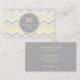 Le motif à la mode et contemporain, de chevron dans des gris doux et les jaunes pâles fait une conception moderne pour n'importe quel professionnel ou consultant en matière de service. Carte de visite parfait pour un organisateur, un dessinateur d'intérieurs, un esthéticien ou tout autre consultant en matière de beauté. Les initiales et le nom chics sur l'avant sont couleur coordonnée et il y a pièce pour toute votre information de contact sur le dos.