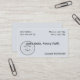 Un design personnalisé simple pour un notaire public. Il affiche un timbre notaire utilisé pour témoigner des signatures sur les formulaires juridiques. Le carte de visite a un arrière - plan bleu pâle.