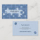 Un carte de visite avec un motif de pièces de puzzle dans les tons bleus. Parfait pour un vendeur ou un fabricant de jeux de société. Cette conception peut également convenir à des activités dans des troubles mentaux comme l'autisme, consultant, thérapeute, entreprise, logistique, enseignant, etc.