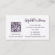 Ce luxueux carte de visite de glam est doté d'un améthyste et d'une pierre à gemme violette. Une beauté naturelle éclatante créée avec un programme d'IA. Élégant script manuscrit. A l'arrière se trouve un code qr scannable personnalisé et les médias sociaux. Parfait pour les maquilleurs, la beauté, le spa et le massage, les décorateurs, les planificateurs mariages et événements et plus encore.