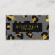 Si vous êtes une patronne de femme, ces impressionnants cartes de visite glamour modernes sont le moyen parfait pour donner une première impression mémorable à votre client. AJOUTEZ VOTRE CODE QR À L'AIDE DE LA carte réseau MODÈLE moderne, girly animalier, avec image numérique d'impression lepard en gris foncé, noir et or parties scintillant. Superposition à bande noire. Idéal pour les professionnels de la beauté, de la mode, du divertissement et des événements. Idéal pour les salons de beauté, les spas, les cosmétiques, les esthéticiens, les studios de danse, les boutiques, les designers, les stylistes de cheveux et de mode ou tout autre professionnel de l'image.