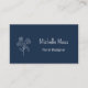 Code QR Botanical floral carte de visite, avec un design simple marguerite sur un arrière - plan bleu marine. Avec des lettres personnalisables bleu marine et blanc, vous pouvez ajouter vos propres informations. Vous ajoutez votre site Web au champ de code QR pour que vos clients puissent l'analyser. Idéal pour promouvoir votre entreprise de design avec un style élégant.