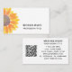 Cette carte de visite moderne et élégante est décorée d'un tournesol jaune aquarelle. Customisez-le avec votre nom, vos détails et votre code QR. Pour modifier davantage, utilisez l'outil de conception pour modifier la police, la taille de police ou la couleur. Parce que nous créons notre oeuvre, vous ne trouverez pas cette image exacte d'autres designers. Aquarelle originale © Michele Davies.