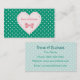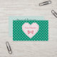 Un motif de point mignon de polka de vert vert avec une correction en forme de coeur a piqué dans rose et embelli avec un joli dans l'arc rose. Personnalisez en ajoutant votre raison sociale à l'avant. Image imprimée d'appartement, ruban non réel.