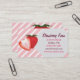 Ces beaux cartes de visite de fraise comportent les fraises rouges mûres délicieuses sur un arrière - plan rayé rose et blanc vibrant ! Ces cartes de visite sont sûrs de laisser une impression durable et sont parfaits pour une ferme de baie, une boulangerie, un boulanger, ou n'importe qui qui aiment des fraises ! Tous les gisements des textes sont entièrement personnalisables ! Des images fournies par la chute et les tubes de Zaza, le Dana Conditt, et les chutes et les graphiques de Karen de digitalscrapdesigns.com et sont employés avec l'autorisation.