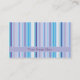 Cartes de visite customisés qui comportent une série de rayures pourpres, bleu-clair, et blanches. Vous pouvez ajouter votre nom ou nom de la société sur la rayure pourpre plan qui va à travers le fond de la carte. Le dos des cartes de visite comportent un arrière - plan pourpre avec des rayures sur le fond. Customisez le postérieur des cartes avec toutes vos informations personnelles. Ces cartes de visite élégants peuvent être employés pour une série d'entreprises.