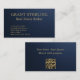 Carte De Visite Real Estate Navy Blue Gold Metallic QR Code