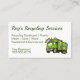 Un carte de visite en grève avec un camion à ordures en caricature verte. Ce grand carte de visite à thème de déchets fonctionnerait bien pour une entreprise de l'environnement de recyclage, de collecte de déchets ou de services de déchets. Facile à personnaliser avec vos propres informations d'entreprise.