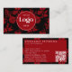 Carte De Visite Red & Black Damask Custom Logo QR Code Template