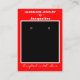 Handmade Jewelry By Name in white against bright red background. Crafted with Love in white script (keep or insert short tagline, or delete to leave area blank). Name will appear on front and backside. Two Small Circles against black and white framed background. NOTE: Circles are not pre-cut, you will need to use a Small hole punch to make clean cut small holes, to then place your Earrings in. Backside: Insert telephone number, email address, website, social media handle, as needed. Insert Your Business QR Code on left-hand side for customers to Shop 24/7, and Pinterest (or other) social media link site QR Code on right-hand side (leave Pinterest icon, or insert other social media icons, or delete icon). Original Design by TamiraZDesigns.