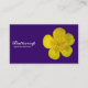 Un carte de visite avec un motif de photo de renoncule. Raison sociale etc. sur l'avant avec d'autres détails sur l'inverse avec le mêmes motif et style.