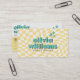A Vintage retro boho chic peach and white checkered QR Code business card. As you see it features a handmade psychedelic groovy boho abstract yellow and cream checkered pattern with a blue groovy font. It has nostalgic seventies and sixties vibes and colors and groovy fonts. With customizable name and profession and hand drawn social media icons . That you can change by clicking on the personalize button. So Grab it and make you business unique and catchy.