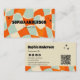 Laissez-vous tenter par ce carte de visite d'inspiration rétro, doté d'un motif aux tonalités orange, turquoise et crème audacieuses. La disposition ludique combine une esthétique funky avec des fonctionnalités modernes, y compris l'espace pour les liens de médias sociaux et un code QR pour un accès facile à votre site Web ou à votre portfolio. Parfait pour les créatifs, les influenceurs, les artistes ou les professionnels de tendance qui cherchent à faire une première impression audacieuse. Entièrement personnalisable pour correspondre à votre marque.