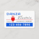 Design features a red power plug with a red border line. Resting on this line is the business name "Electric" which you can change with your prestigious name at the top corner. This is followed by two slogan captions near the center for publicity. At the base is the phone contact inside a blue layer.