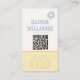 If you looking for a perfect and unique scannable business card this one is for you!! A unique and retro bohemian chic blue trendy bright bold business card template . As you it features a plain white clear background with elegant unique groovy pastel blue script font and hand drawn yellow checkered squares and orange and blue daisy flower . With vintage title or profession template. And in the back we have the hand drawn social media icons with other info as website and contact info and QR code. You can simply and easily customize it by clicking in the blue Personalize button and then change the info. What you waiting for!! Go a head and grab it , we guarantee you the amazing quality and fast shipping.