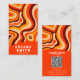 Un Vintage rétro Psychedelic coloré carte de visite liquide. Il dispose d'un boho motif super fait main abstraites formes ondulées lignes.Dans élégant chic orange et marron et beige. Moderne mais il a nostalgique seventies vibes et couleurs et polices super. Avec nom et profession personnalisables et code QR.