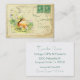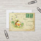 Un petit bébé robin est assis dans les violettes. Le arrière - plan est des morceaux d'éphémère et de carte postale vintage avec grunge et vieux timbres.