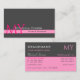 Carte De Visite Rose clair gris foncé avec initiales Professionnel
