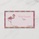 Un carte de visite rose élégant de conception de plaid de Madras, avec un flamant doux fait dans le plaid. Customisez cette carte pour adapter à vos besoins en ajoutant plus de gisements des textes, de taille changeante des textes, de style ou de couleur, beaucoup d'options disponibles pour adapter à vos besoins.