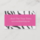 Le carte de visite rose de mode de bourse de zèbre a la conception de bourse sur l'avant et la copie assortie de rose et de zèbre sur le dos.