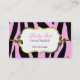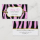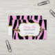 Carte de visite élégant de poster de animal, avec une copie colorée noire et rose de zèbre comme arrière - plan, sur l'avant et le dos de la carte. Une rayure goldtone décorative fonctionne à travers le milieu, sur l'avant et le postérieur. Un or semblant le secteur encadré des textes a de jolis graphiques de feuille d'or, de chaque côté, et de texte personnalisable noir prêt à personnaliser pour vos affaires.