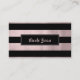 Carte De Visite Rose Gold Rose & Black Stripes Chic Design Glam