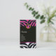 Design unique élégant, classe, coloré ; noir blanc rayé zèbre sauvage motif avec un rose vif.fuchsia améthyste pierre de gemme.Vous pouvez déplacer la pierre de gemme pour customiser avec vos initiales et votre propre texte.Cette carte artistique et cool est parfaite pour le coiffeur, costume designer, fashionista, maquettistes, couturiers, créateurs de vêtements, propriétaires de boutique, Cosmétologistes, parfums, particuliers, consultants en armoires et autres professions créatives.