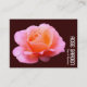 Modèle de carte de visite avec un texte vertical. Rose attrayant à l'avant. Nom de l'entreprise en texte tourné sur l'avant et l'arrière avec tous les autres coordonnées sur l'arrière. La photo ou l'image sur le devant peut également être changée. La conception permet également une personnalisation supplémentaire.