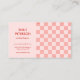 Ce carte de visite de style rétro est doté d'un arrière - plan rose à damiers et d'une police rouge contrastée. Ajoutez vos informations d'entreprise, les médias sociaux ou le site Web à l'arrière de la carte.