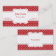 Un grand carte de visite pour toutes affaires ou profession. Il a une rayure rouge sur le dessus et le bas avec le pois blanc minuscule. Le centre est blanc avec le texte rouge. Vous customisez le texte sur l'avant et le dos.