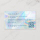 "Un arrière - plan holographique mignon et brillant vous remercie carte de visite pour les propriétaires de petites entreprises et les grandes entreprises. Le design comprend un arrière - plan moderne, script, typographie, polices tendance et simple mais efficace. Parfait pour un esthéticien ou un propriétaire de salon de beauté, un maquilleur, un costumier, un coiffeur, un coiffeur ou un cosmétologue." Ajoutez simplement votre logo, votre nom et vos détails commerciaux à cette carte lumineuse et moderne en cliquant sur le bouton "Personnaliser" ci-dessus. REMARQUE : Les détails holographiques sont simulés dans l'illustration. Il n'y aura aucun effet holographique réel de brillance lors de l'impression.