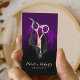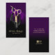 Salon des cheveux Ciseaux or & Rose violet Fleur moderne des Cartes de visite de Styliste moderne.