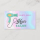 Sèche-cheveux sur arrière - plan holographique. Un design polyvalent pour les professionnels de la création et les entrepreneurs.Grand choix pour un salon de beauté, boutique, cosmétiques, spa, manager, fleuriste, maquilleur, planificateur d'événements, décorateur d'intérieur, concepteur extérieur, designers, créateurs de mode. Excellent carte de visite de qualité qui peut être customisé avec vos informations.