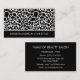 Girly noir et blanc girafe imprimer cheveux styliste cartes de visite. Personnalisez ces cartes de visite professionnels chic de salon de coiffure en ajoutant le nom de consultant beauté. Ce design poster de animal design noir et blanc séduira les clients et les clients.