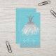 Carte de visite d'ouvrière couturière de robe élégante, avec des graphiques d'une robe de parties scintillantes de blanc et d'argent, sur un fond bleu d'oeufs de merle, avec les parties scintillantes argentées regardant des accents. Personnalisez le texte pour adapter à vos besoins d'affaires. Un beau tient la carte pour vos affaires de mise sur pied.