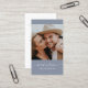 Cartes de visite de photographie moderne et professionnel avec votre photo avec une typographie de script minimaliste tendance sur un fond bleu poussiéreux. Ajoutez vos coordonnées à l'arrière. Comprend trois icônes de médias sociaux et un champ pour votre nom d'utilisateur.