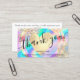 dites grand merci et montrez votre amour et l'appréciation de vos clients avec cette carte script moderne avec le coeur et l'arrière - plan holographique, les invitant à acheter à nouveau, laisser un commentaire et vous étiqueter sur les médias sociaux. Vous pouvez modifier les couleurs du coeur, du texte et des icônes pour adapter votre marque