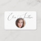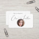 Ce design blanc simple et professionnel comprend une élégante typographie de script, une photo ronde (remplacez-la par une photo carré pour obtenir de meilleurs résultats), de nombreuses icônes de médias sociaux et un code QR à personnaliser avec votre site Web ou blog. Les icônes des médias sociaux peuvent être déplacées ou supprimées à l'aide de l'outil de conception.
