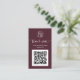 Script minimaliste moderne et code QR dans l'ordre d'affaires bordeaux rouge merci. Ajoutez vos médias sociaux. Avec une police de script de signature élégante, toutes les couleurs sont modifiables, ajoutez votre logo. Avis 5 étoiles pour vos clients.