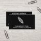 Un carte de visite professionnel pour un notaire public, un service d'apposition ou un agent de signature de prêt. Un design moderne, simple et minimaliste avec un stylo en plumes sur un arrière - plan noir. Modifiez les modèles de texte pour votre propre carte de visite personnalisé.