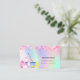 Un carte de visite élégant et glamour sur arrière - plan holographique, rose, violet, vert menthe décoré de confettis roses à l'avant et des équipements de nettoyage. Personnalisez et ajoutez votre nom, vos coordonnées textuelles et votre propre code QR à votre adresse Web.