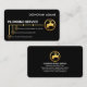 Un couvercle tout noir est doté d'une conception créative de tuyau d'eau avec des "tuyaux fuyants" comme boutons pour stocker vos informations de carte. Juste au-dessus de ce pipeline se trouve le nom d'entreprise avec un logo de robinet or que vous pouvez utiliser à sa droite. Votre nom prestigieux est en haut de la carte. Le logo or se trouve en haut, suivi du nom commercial, des coordonnées et d'une option slogan pour faire connaître vos services. Un design idéal pour les plombiers.