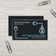 Un circuit électrique bleu créatif tire le pouvoir de votre prestigieux nom et titre de travail au coin supérieur de la couverture gris foncé. Juste en-dessous se trouve un slogan pour faire connaître votre entreprise ; Vous pouvez changer la légende en slogan pour qu'elle corresponde à vos besoins en matière de services. L'ampoule allume le nom d'entreprise bleu et ses coordonnées près de la base de la carte.