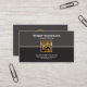 Une rétro conception simple. La carte est divisée en moitiés de gris et de noir. Une ligne blanche délimite ces deux colonnes. Au centre est un motif carré d'or d'une scène à la maison. Votre nom et fonction sont au dessus suivi des détails de raison sociale et de contact à la base.
