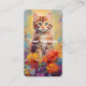 Une peinture à l'huile d'un adorable petit chaton debout sur des fleurs colorées. Ceci est une carte de visite pour les personnes qui gardent des chats.