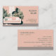 Un design carte de visite moderne, simple et élégant pour une entreprise de nettoyage et de services ménagers. Il présente une illustration rétro chic d'un canapé moderne, avec des plantes luxuriants de chaque côté, dans des couleurs rose et marron moche poussiéreuses. Ce carte de visite photo est parfait pour les services de ménage, de ménage, de ménage, de ménage, de ménage, de ménage ou de ménage.