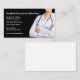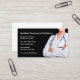 Modèle de carte de visite du conseiller en soins de santé et en assurance médicale avec l'image d'une infirmière en uniforme avec un stéthoscope et une présentation simple organisée que vous pouvez customiser en ligne.
