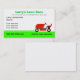 Carte de visite pour le service de fauchage de pelouse. Herbe verte avec une tondeuse à gazon de cavalier.