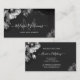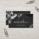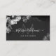Silver flowers on a black background with your name in an elegant handwritten script and your monogram.