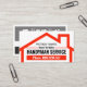 Design features a red rooftop building placard design. Inside the building you have your prestigious name at the top alongside a slogan caption "Always the Better" which you can change. Just underneath this is the business name "HANDYMAN SERVICE" and the phone contact.
